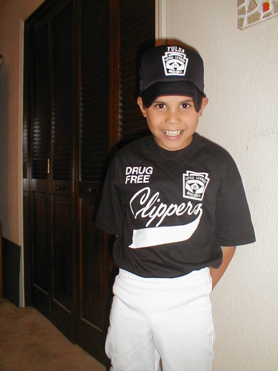 We forgot to take pictures of a lot of games, but here's Davey in his uniform:
