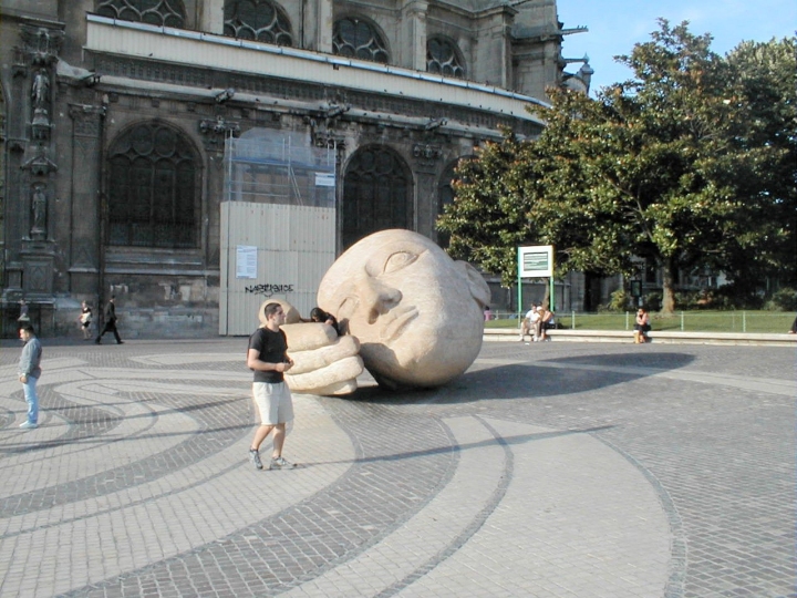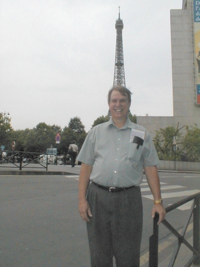 Eiffel tower sticking out of Geof's head.