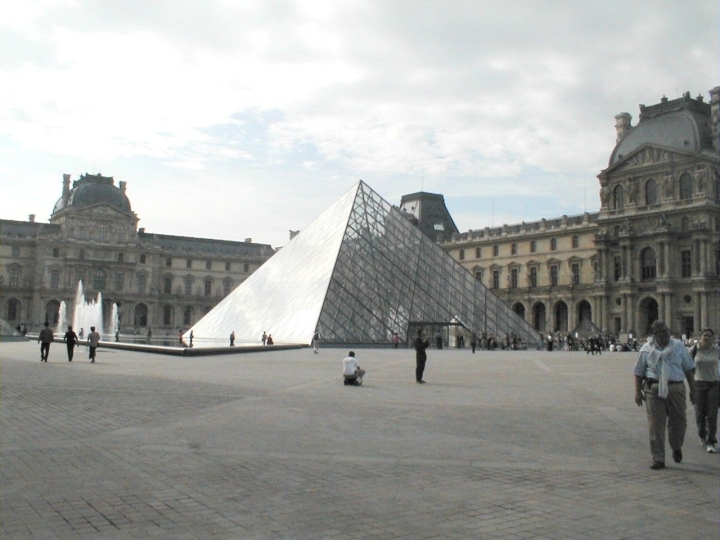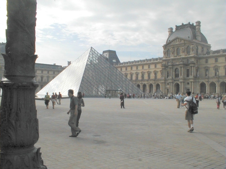The modern pyramid entryway outside the old Louvre buildings looked awful,