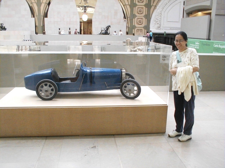 Orsay Museum. Geof at Whistler's Mother, and Judy next to a Bugatti car.