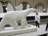 Judy near a Polar Bear statue, and some Onyx sculpture.