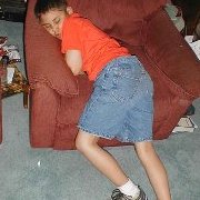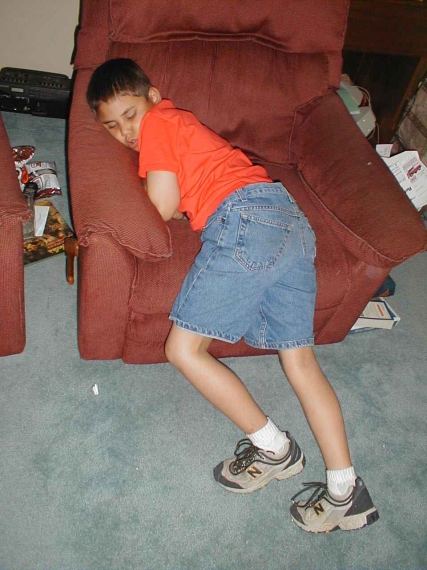 came home and just flat crashed, half-on and half-off the easy chair. |