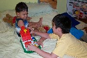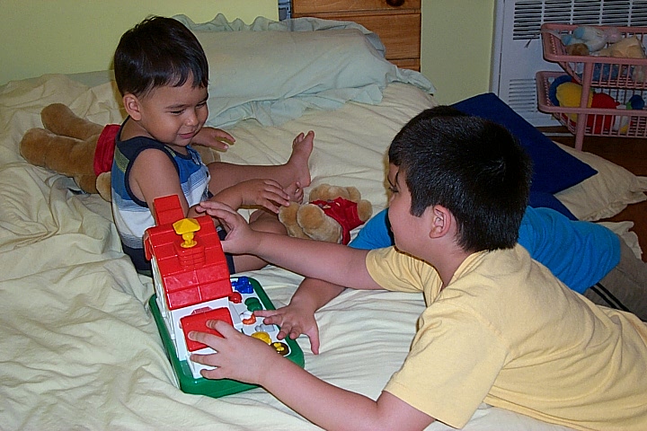 Judy and Beanie at Helen's house. Cousin Sammy in the