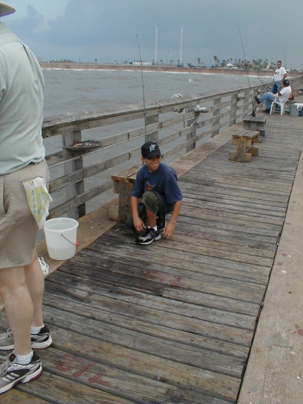 Joey fishing off the Galveston pier. |