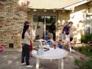 Charlie Biggs is cooking. Jim Luetjen is watching