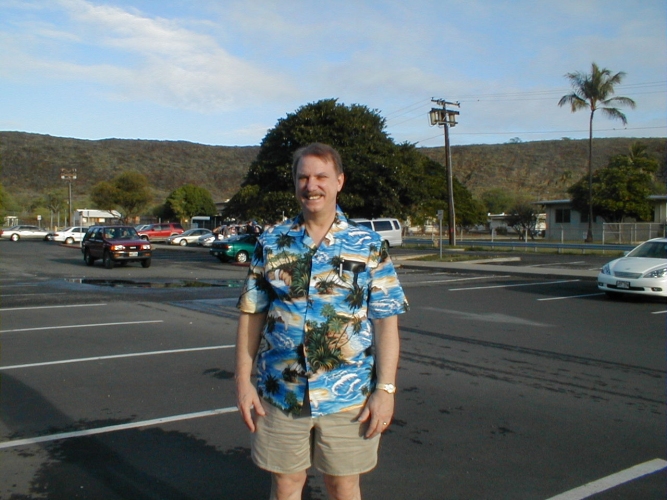 were in Honolulu. Notice that we are wearing shorts. It was late January,