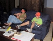 Davey and Mom rented a "SpyKids" movie. You could watch it in 3D if you happen to have the glasses. Believe it or not, I happen to have some lying around (doesn't everyone?). |