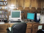 When Judy was in Chile this summer, Geof rebuilt her main machine and put in a second monitor. It's very handy. Now she can work twice as fast, and should only need to work half the time! |