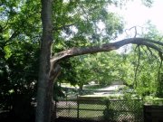 A tree branch in our backyard cracked and fell on the neighbor's gazebo. Fortunately, no damage was done either in our yard or to the neighbor's property. |