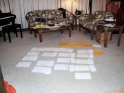 Jerry spread out his papers in the sunroom. He's only applying to 5 schools (Rice, Princeton, Washington U, UMissouri - Rolla, and TU), but there were so many forms! |