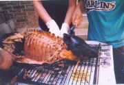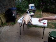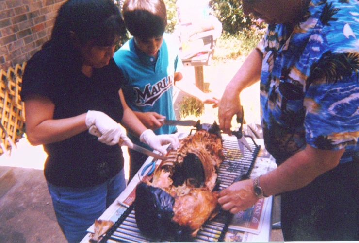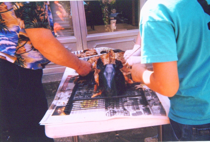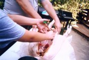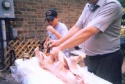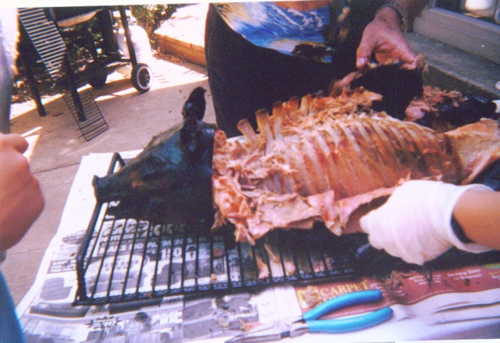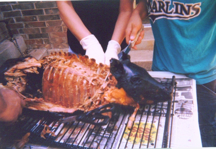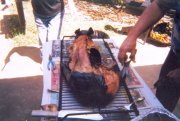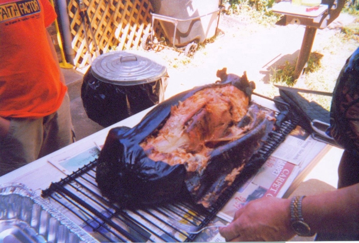We had a Pig Roast for our Sunday School class and some extra friends on Labor Day. Here's the pig. |