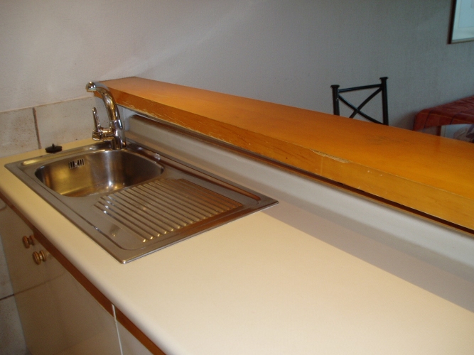 Here is my kitchen. I didn't use it except to drink the bottled water that they always put in the fridge. And to make instant coffee. |