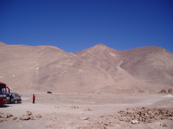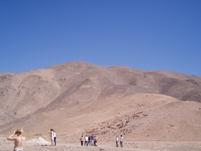 We went on a tour into the desert. There are geoglyphs carved into the hillsides. The tour guide spoke only Spanish, so I didn't understand much, but they were impressive to see. |