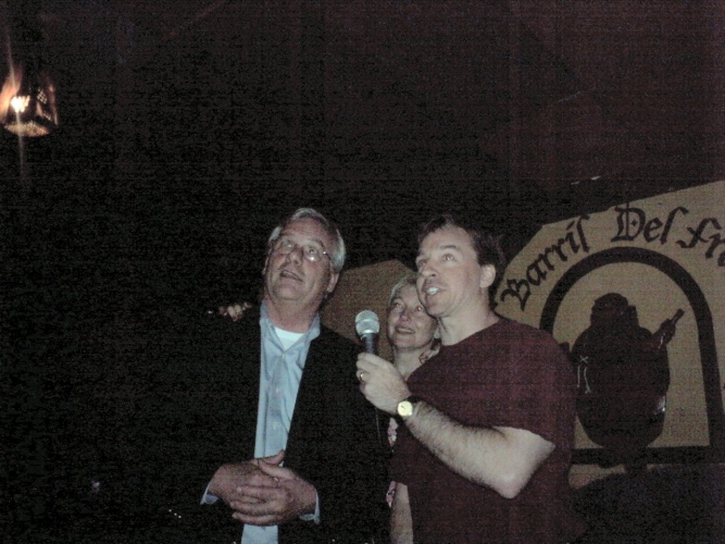 We went to some place where they had karaoke. Gordon, Marival, and Jim had a go at it. |