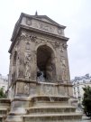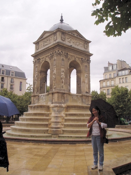We went walking around the neighborhood. It was rainy and cold for a lot of the time we were in Paris, but that didn't dampen our spirits one bit! This is the Fontaine des Innocents.