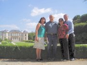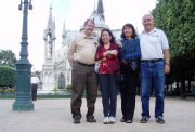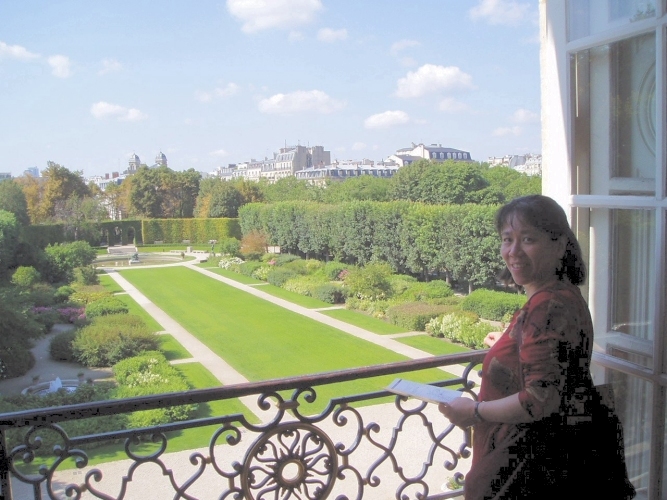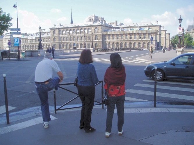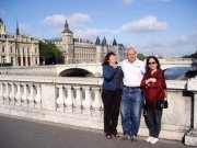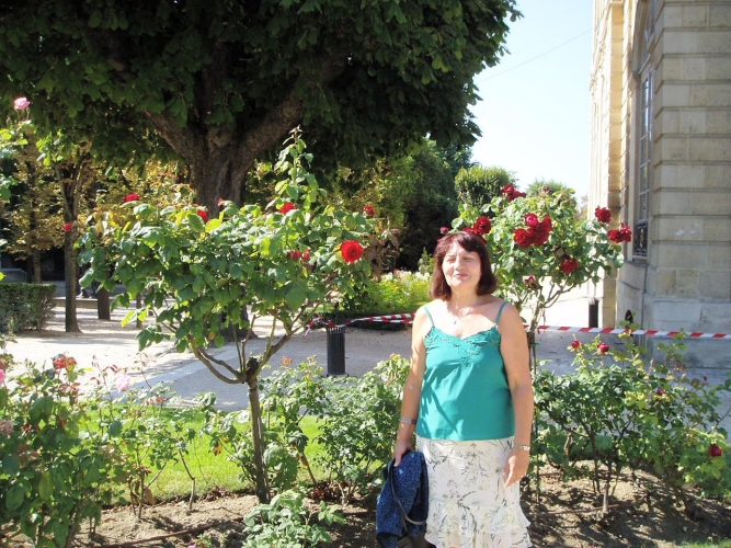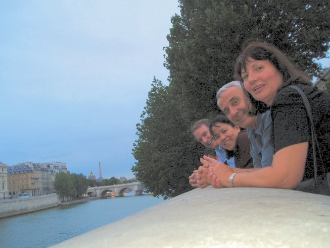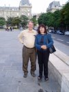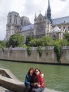 Geof was very good at finding solid spots to rest the camera so that he could also be in the photo. Here we are in the garden behind Notre Dame.