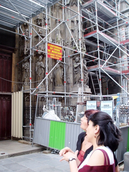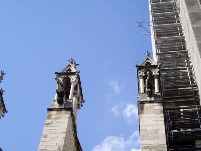 They have been renovating Notre Dame for several years. The front facade has been washed. You can see the scaffolding on the side of the building.