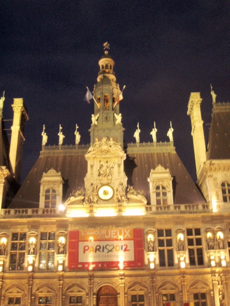 The Hotel de Ville all lit up in the evening. Paris is bidding to host the Summer Olympics in 2012.