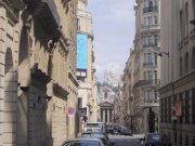 We were walking along one of the boulevards, and looking down a small street, you can see Sacre Coeur on the hill.