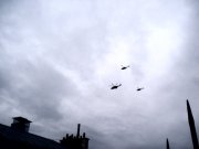 Milé and I were just about to go down to the Metro station, and I stopped to buy a newspaper. Suddenly, we hear lots of airplanes overhead. It was a major convoy of aircraft ferrying dignitaries. I returned to our hotel, and a short while later, these same helicopters flew overhead.