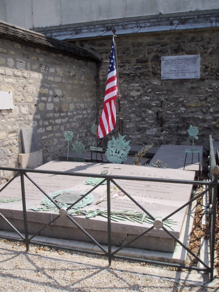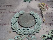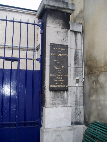 I had read in Fodor's that there is a little known cemetary nearby, Picpus Cemetary, where General LaFayette is buried. Along with a mass grave of victims executed during the bloody revolution. Milé and I walked all around trying to find this place, because we didn't have a good map. The people who live and work there don't even know the cemetary exists! But we found it. |