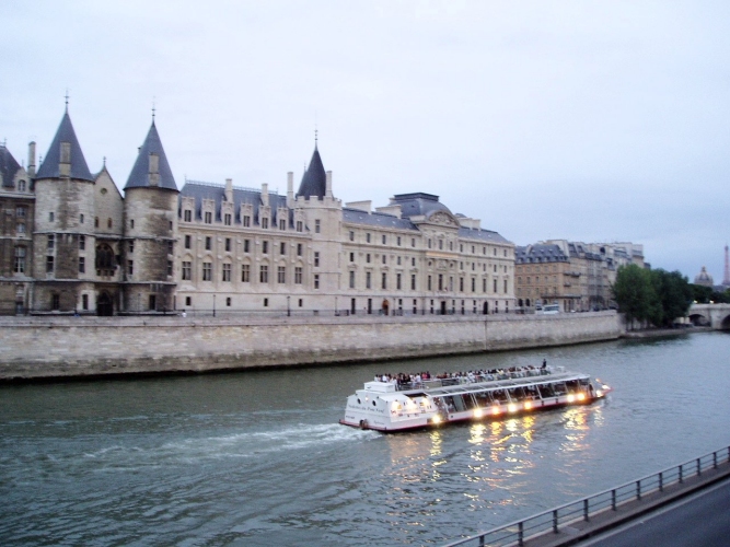 This is one of the many party boats on the Seine on Bastille Day.
