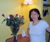 Vlado discovered that my birthday is the day after Bastille Day. We were traveling home. Milé and Vlado had an early flight back to Sofia the next day. That night, he saw a man delivering these flowers. He bought them from the man and left them at the hotel desk for me!