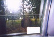 It's hard to see the ostrich in this photo. We couldn't figure out how to turn off the flash on this camera. |