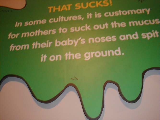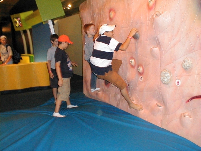 There was also a "Grossology" exhibit -- the science of the gross things in the human body. The boys are climbing on a huge model of your skin, complete with zits, moles, pores and cuts. |