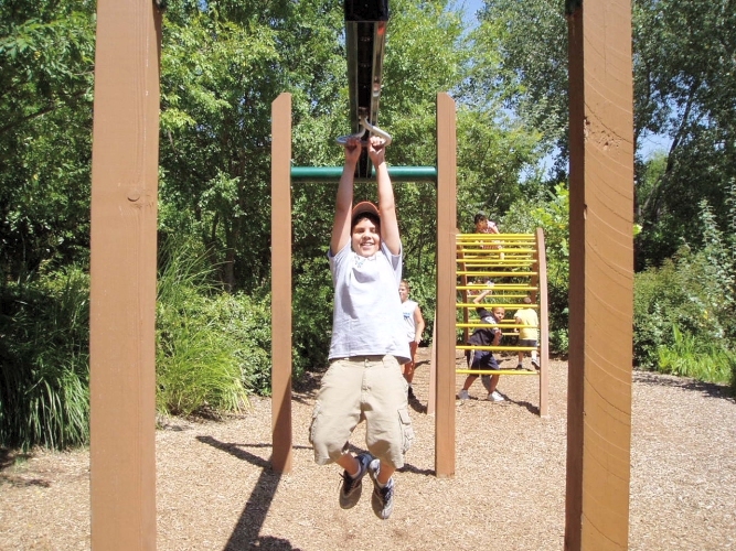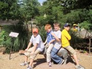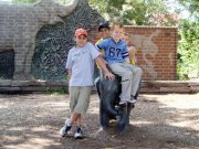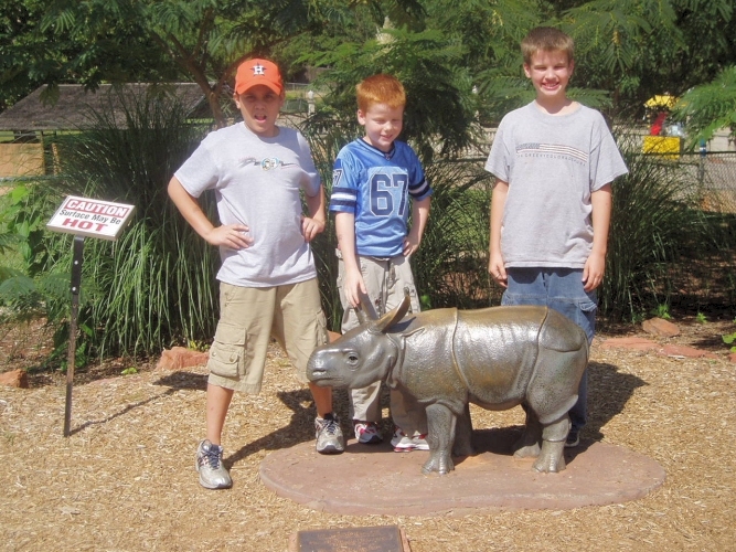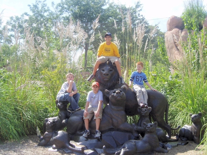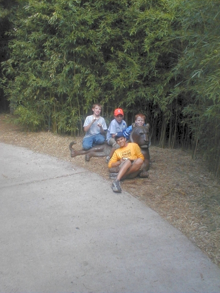 Throughout the zoo, there are animal statues. The boys had to climb on every one of them. |