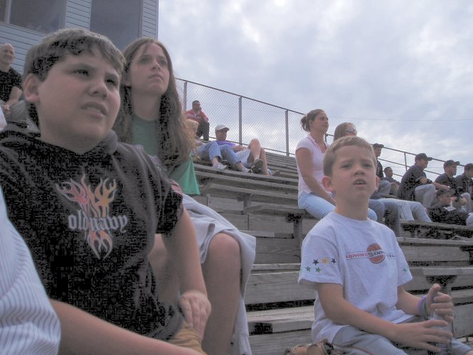 Jerry played in the state championship tournament for his high school team, Booker T. Washington. Here are David, Marissa Brown (Jerry's friend) and Marissa's brother Landon sitting in the stands at LaFortune Park waiting for the championships to begin. |