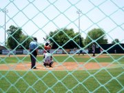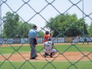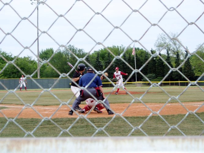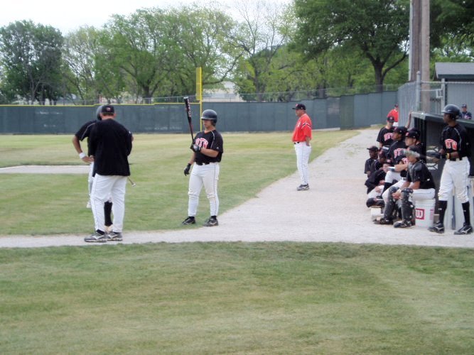 Jerry on deck talking to Coach P and Kevin. Jerry was the team's leading batter this year. He mostly played DH and pitched quite a bit. |