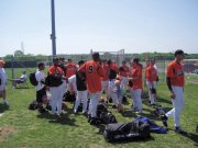 Before Game 2 of the Regional Tournament in Tulsa. Kevin (#1) and Jerry (#8) are getting ready to bat. |