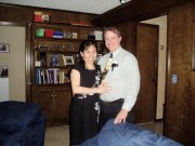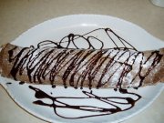 Judy and David love to cook. Here's a tasty treat they made - cake roulade. It's made of thinly sliced cake covered with a creamy filling made mostly of CoolWhip, then rolled up. It didn't last very long.