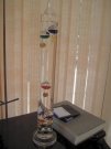 We got this Galileo's thermometer at Cabela's in Kansas City, and it now sits on Judy's piano. It gives a rough indication of the temperature according to which balls sink and which float.
