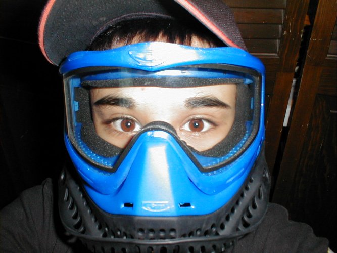 Joey in his paint ball gear. All you can see are his beautiful eyes!