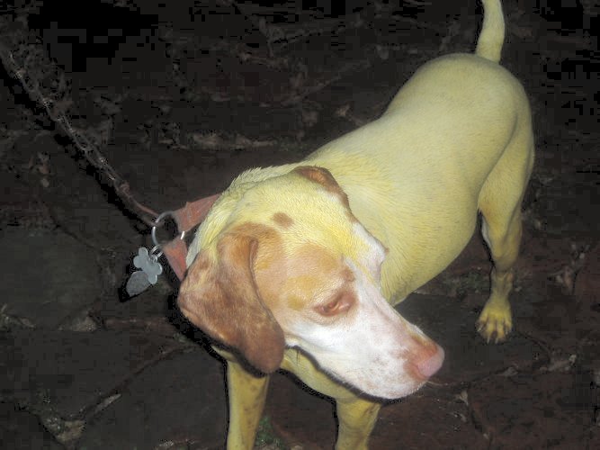 Here is our crazy dog, Sheba. We had a tough time with fleas last summer, and she had just been dipped in a flea dip that turned her yellow.