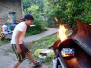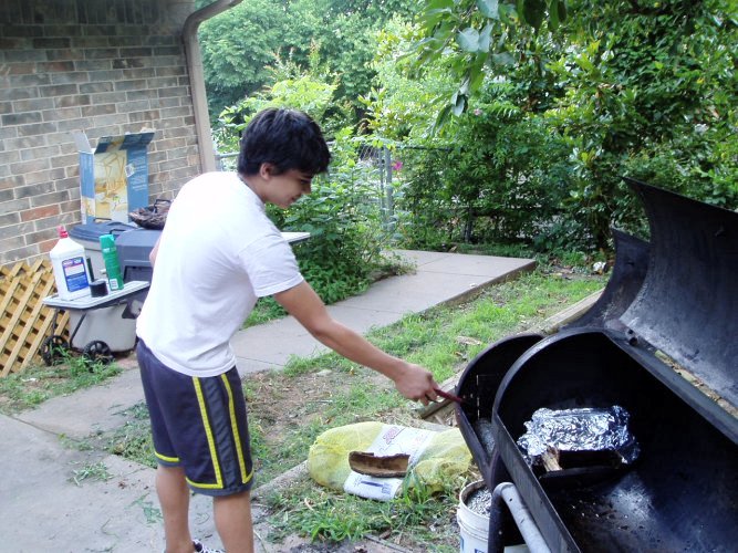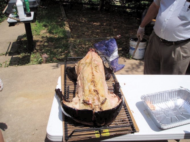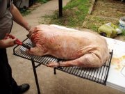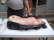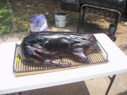 Here is the 39 pound pig we cooked for Jerry's graduation party.