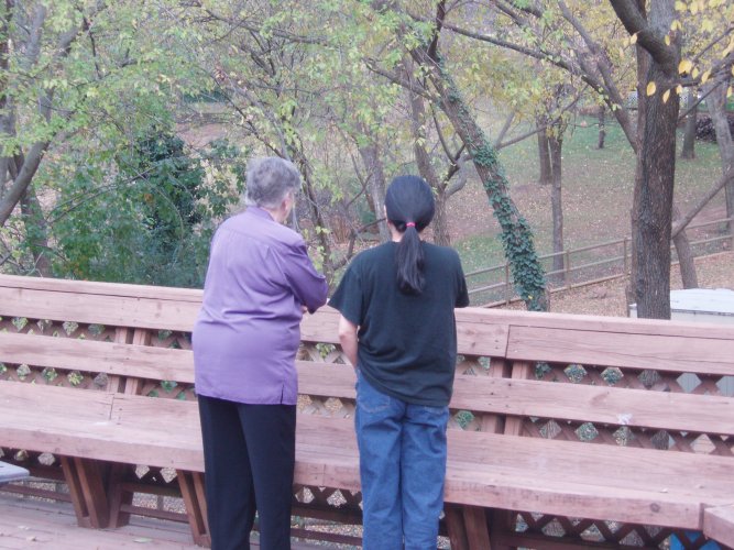 Judy was showing off the work that Geof had done in the backyard to Paula. |