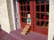 A set of steps for the cat to go in the little cat door on the back porch of the Cresent Inn. Funny! |