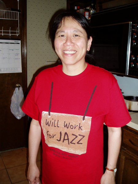 Judy got some t-shirts down at 18th and Vine, which is a historic jazz district housing a jazz museum. She got both a short sleeved and a long sleeved one. She works for jazz year-round. |