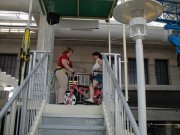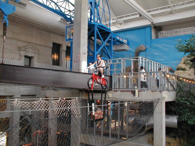 Here we are at the science museum. Judy is getting up all her nerve to ride a bike on a tightrope. |