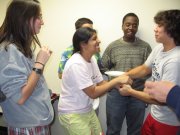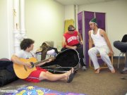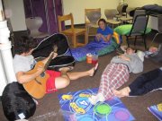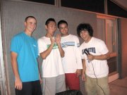 Getting ready for our talent show. Gregg (red) and Steve (white) had a rapping contest. We left out the videos for a reason. |
