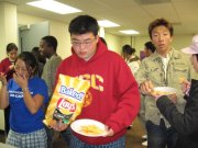 Nyda, James, Julia and Josh in the back row. HeeEun, Ai-Lin, Lulu, and Jin in the front. This was during our Halloween celebration (James was... I'm not sure) |