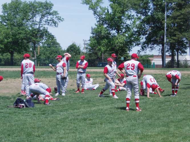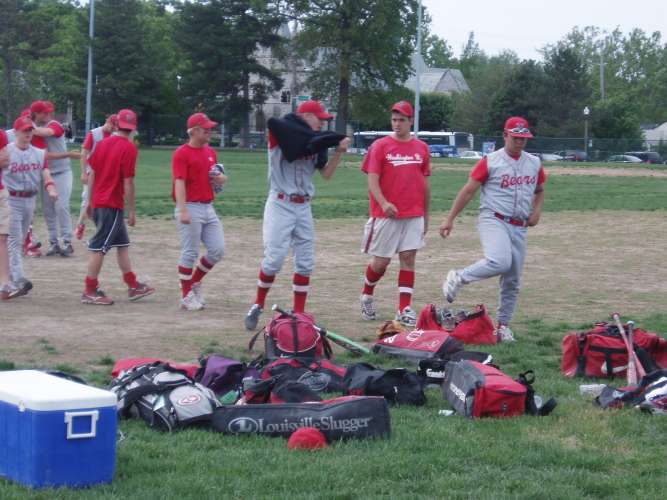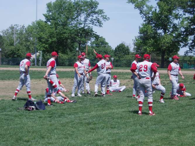 Here's the team getting ready between games.