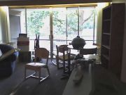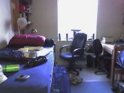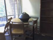 Here's a veiw of Jerry's dorm for his second year at Wash U. He shares a suite with five other guys and this is the living area. |