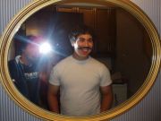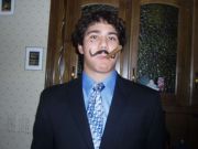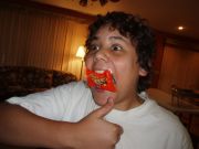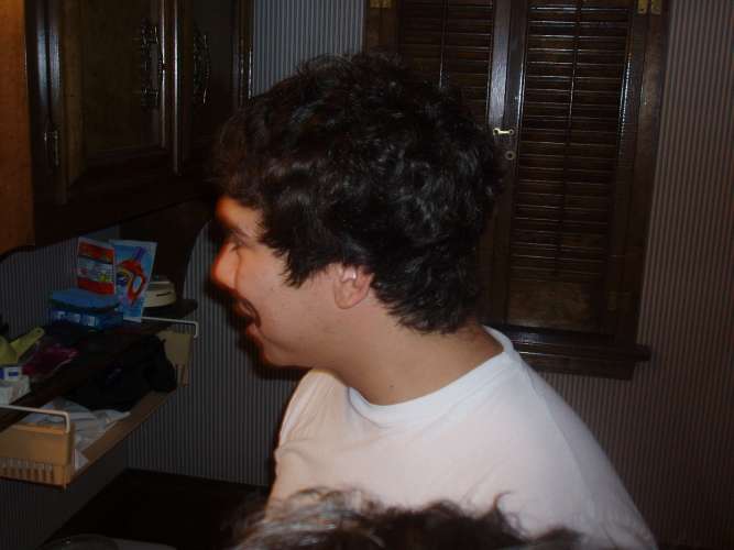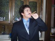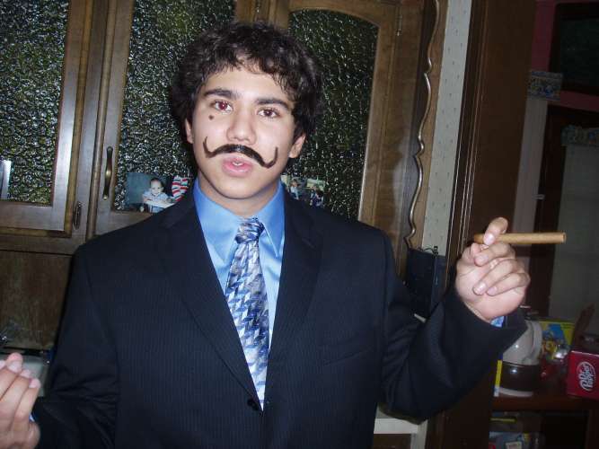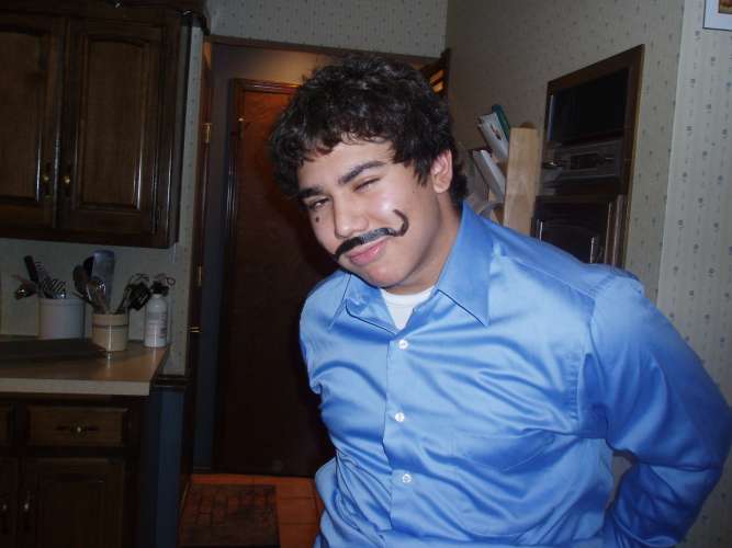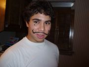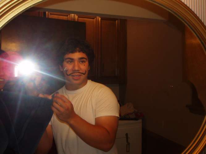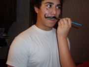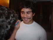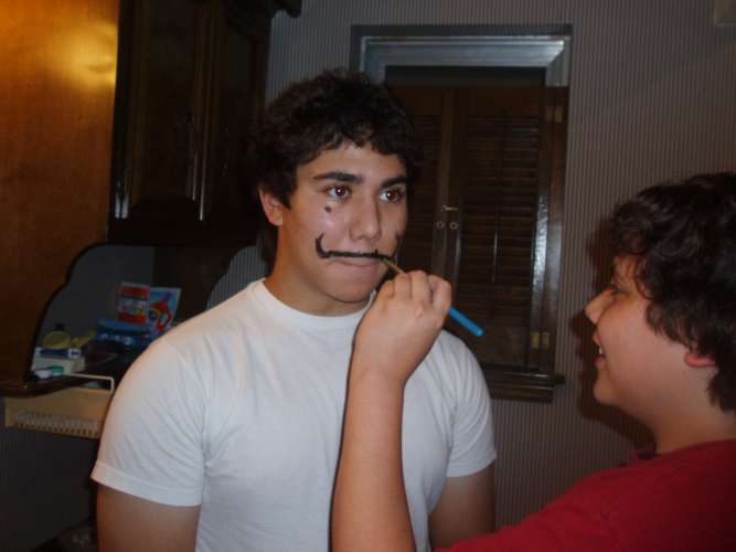 David is the artistic one. Here he is painting on a mustache using eye black! |
