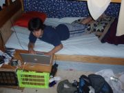 This is a futon that Jerry bought at the end of spring semester. He stored it in Julie's house over the summer. It has already come in handy when Davey slept on it during our last visit. |