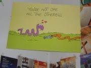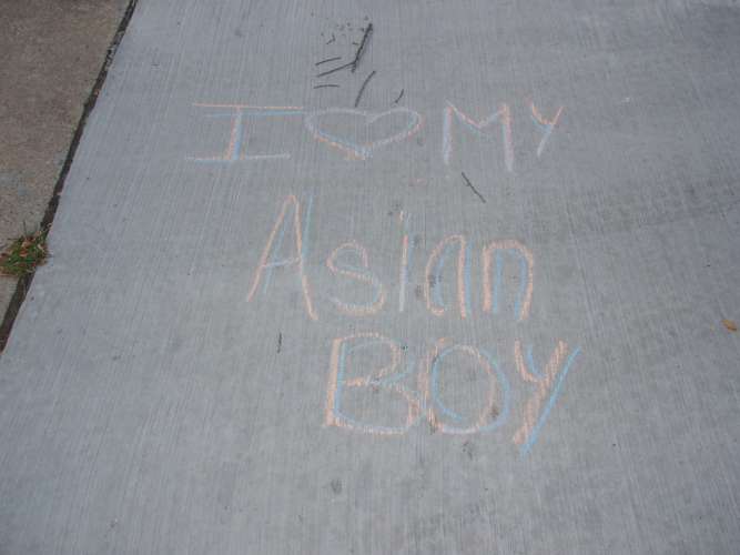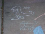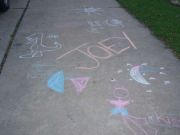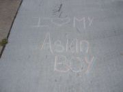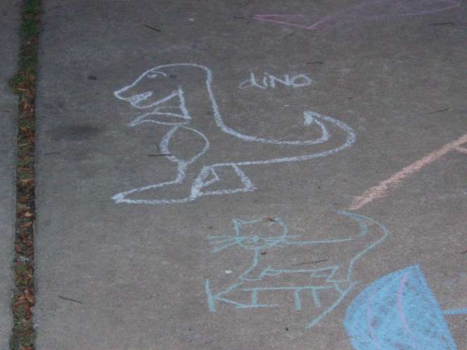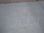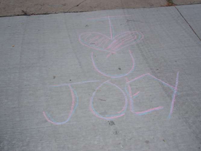 One morning heading out for the paper, Geof encountered a few notes on our driveway written in chalk. |