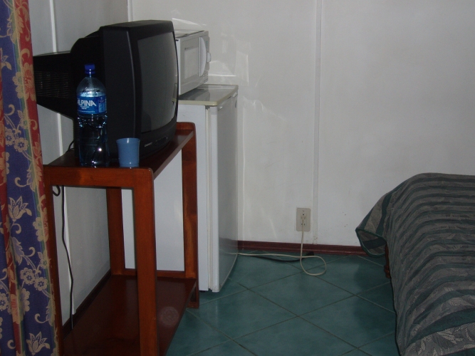This was my room. It was an adequate, but not luxurious room. This fridge was so noisy that I unplugged it for the duration of my stay. |